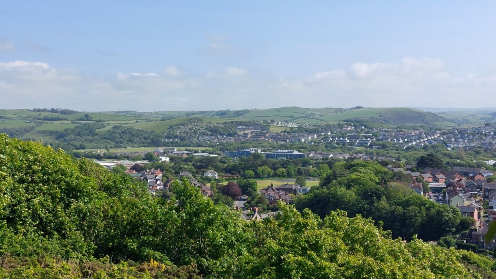 Link to openly available OS map for the area, edited by us to indicate the route’: To Parc Natur Penglais Viewpoint and back Via Solar Array and WWII Garden Distance 3.97km; Time: 57min; Total Elevation 102m.